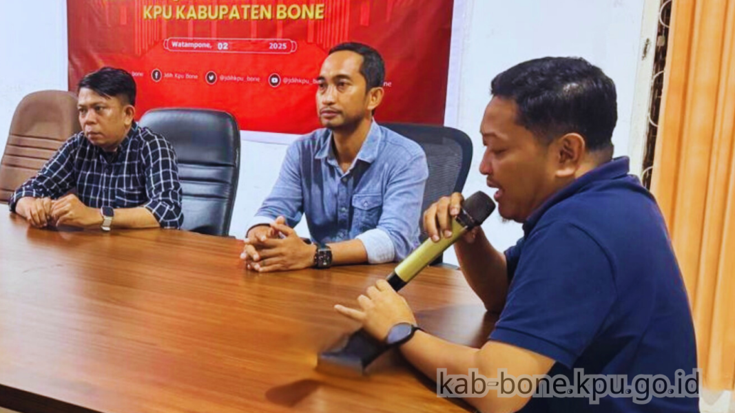 Watampone, kab-bone.kpu.go.id - Komisi Pemilihan Umum Kabupaten Bone menggelar Rapat Koordinasi Pencermatan Keputusan Komisi Pemilihan Umum Nomor 360 Tahun 2024 tentang Penetapan Hasil Pemilihan Umum Presiden dan Wakil Presiden, Anggota Dewan Perwakilan Rakyat, Dewan Perwakilan Daerah, Dewan Perwakilan Rakyat Daerah Provinsi, dan Dewan Perwakilan Rakyat Daerah Kabupaten/Kota secara Nasional Dalam Pemilihan Umum Tahun 2024 bertempat di Media Center KPU Bone pada hari Jumat, (5/12/2025). Pelaksanaan kegiatan sebagai upaya untuk memastikan kesesuaian data hasil Pemilu 2024 melalui pencermatan terhadap Lampiran I Keputusan Komisi Pemilihan Umum Nomor 360 Tahun 2024. Rapat ini juga membahas temuan perbedaan data serta tindak lanjut yang akan ditempuh secara transparan dan akuntabel. Turut hadir Bawaslu Kabupaten Bone beserta Para Pimpinan/Narahubung Partai Politik. ....