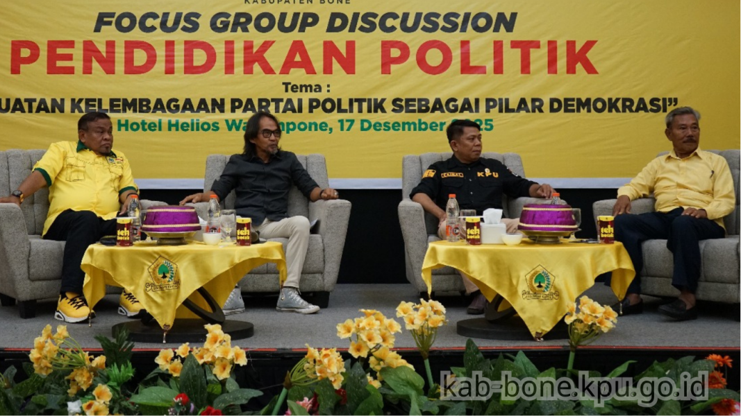 KPU Bone Hadiri Kegiatan Focus Group Discussion Pendidikan Politik dengan tema Penguatan Kelembagaan Partai Politik sebagai Pilar Demokrasi
