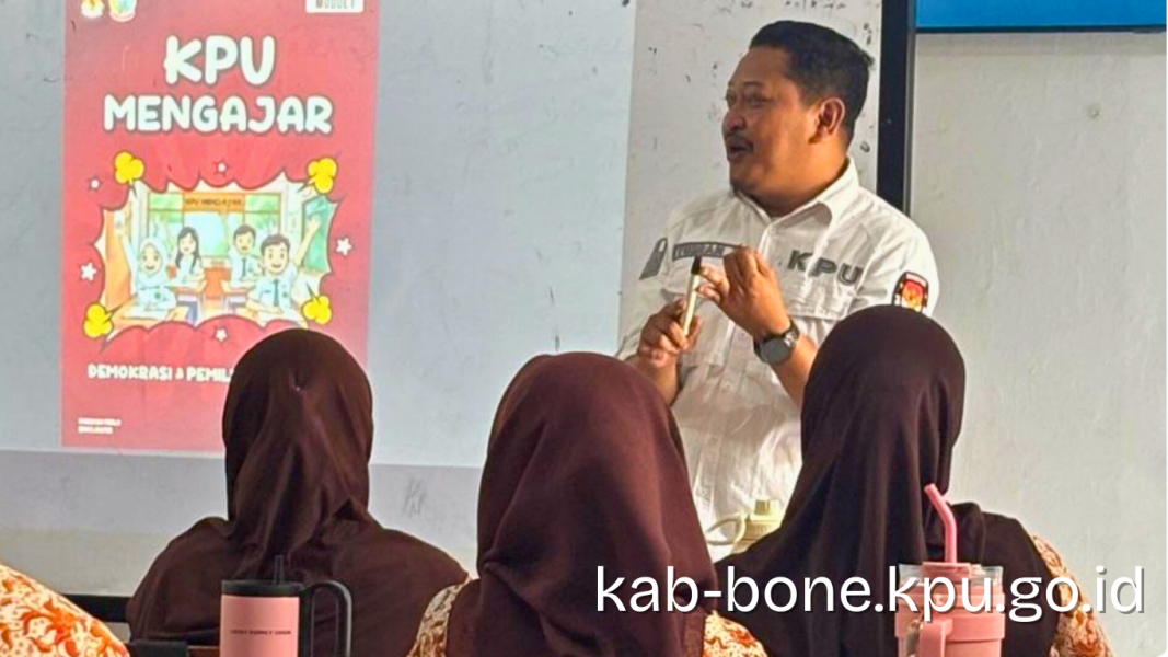 kab-bone.kpu.go.id – Komisi Pemilihan Umum (KPU) Bone melaksanakan kegiatan sosialisasi pendidikan pemilih berkelanjutan dan terintegrasi tahun 2026 dalam bentuk program KPU Mengajar dengan berdasar pada Keputusan KPU Provinsi Sulawesi Selatan Nomor 3628 Tahun 2025 tentang Petunjuk Teknis Program dan Penetapan Lokus KPU Mengajar pada 24 (dua puluh empat) Kabupaten/Kota di Sulawesi Selatan dan Surat Dinas Ketua Komisi Pemilihan Umum Provinsi Sulawesi Selatan Nomor 4361/PP.06-SD/2.2/2025 perihal Penyampaian KPU Mengajar, serta Surat Dinas Kepala Cabang Dinas Pendidikan Wilayah III Nomor : 400.3/004/CD.WIL.III/DISDIK perihal Penyampaian Pelaksanaan Kegiatan KPU Mengajar. Program ini menjadi salah satu kegiatan sosialisasi andalan KPU Provinsi Sulawesi Selatan dalam upaya menjemput pemilih langsung ke sekolah-sekolah dan terus berkomitmen meningkatkan literasi kepemiluan, khususnya bagi pemilih pemula. Kamis, 8 Januari 2026 Ketua KPU Kabupaten Bone, Yusran Tajuddin, menjadi narasumber dalam kegiatan KPU Mengajar yang dilaksanakan di SMA Negeri 1 Bone. Kegiatan ini diikuti oleh para siswa dengan antusias sebagai bagian dari pendidikan demokrasi sejak dini. Dalam materinya, Yusran membawakan materi dengan tema “Demokrasi dan Pemilu di Indonesia” yang disampaikan dalam bentuk ceramah interaktif. Ia menjelaskan demokrasi, sejarah Pemilu di Indonesia, Penyelenggara Pemilu, dasar hukum penyelenggaraan Pemilu, serta ruang lingkup dan perbedaan Pemilu dan Pemilihan, yang mendorong peserta didik berlatih menyusun argumen secara kritis. Melalui program KPU Mengajar, KPU berharap pemilih pemula tidak hanya memahami teknis pencoblosan dan hanya berfokus pada penyampaian informasi, tetapi juga pada peningkatan pemahaman, pembentukan sikap, dan penguatan nilai-nilai demokrasi. KPU Kabupaten Bone melalui pelaksanaan kegiatan KPU Mengajar, diharapkan tercipta pemilih pemula yang lebih sadar hak dan kewajibannya, serta dapat memberikan kontribusi signifikan bagi upaya membangun generasi penerus bangsa yang menjunjung tinggi prinsip-prinsip demokrasi dalam setiap proses Pemilihan Umum. ....