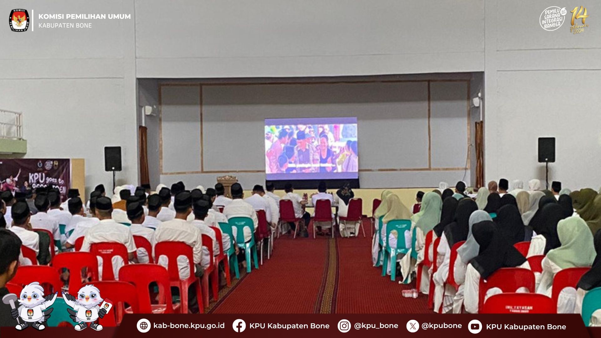 Gelaran nonton bareng pada momen Peringatan Hari Santri Nasional Tahun 2023 ini merupakan salah satu program KPU Bone yang bertajuk KPU Goes to Pesantren.