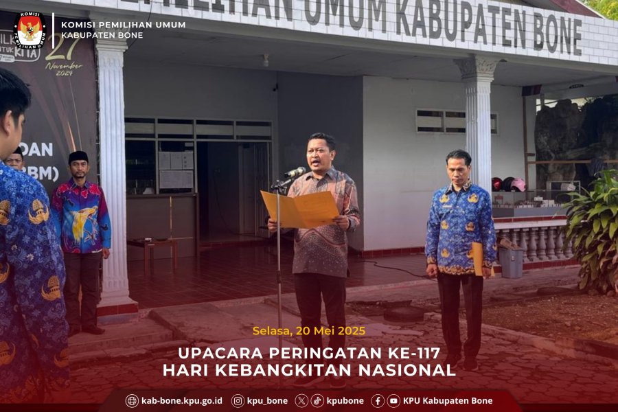 Komisi Pemilihan Umum Kabupaten Bone melaksanakan Upacara Peringatan Ke-117 Hari Kebangkitan Nasional (HARKITNAS) pada Selasa, 20 Mei 2025.