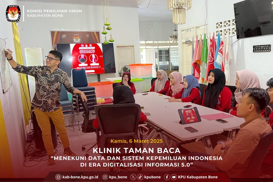 Komisi Pemilihan Umum Kabupaten Bone menerima Mahasiswa Kuliah Kerja Nyata (KKN) Fakultas Hukum dan Politik Angkatan III Universitas Andi Sudirman yang didampingi langsung oleh Dosen Pendamping Bapak Agustapa, S.H., M.H. dan Bapak A. Aswar, S.H., M.H., pada hari Senin, 24 Februari 2025 bertempat di Ruang Pertemuan KPU Bone.
