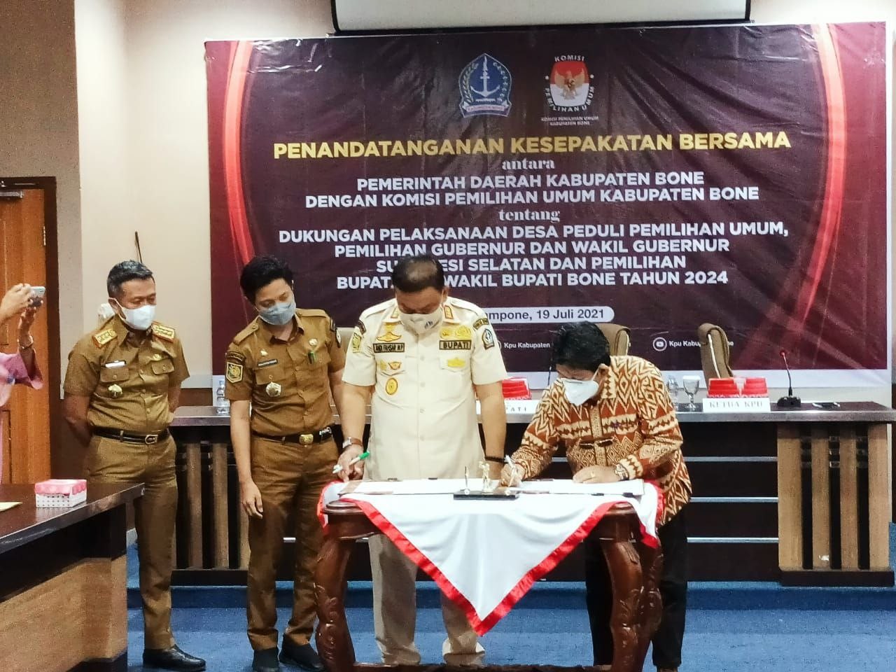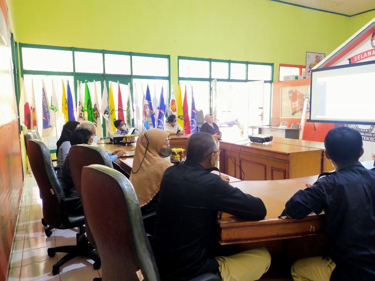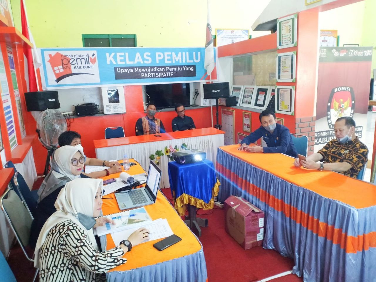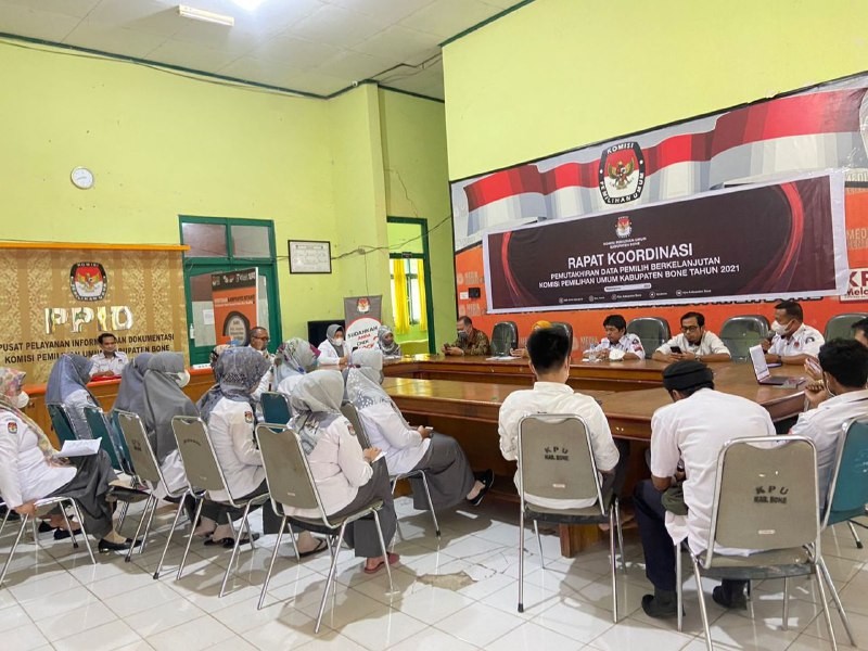 KPU BONE – Komisi Pemilihan Umum (KPU) Kabupaten Bone kembali melaksanakan Rapat Rutin Mingguan yang diikuti oleh komisioner dan jajaran sekretariat KPU Bone, Senin, 1 November 2021. Ketua KPU, Izharul Haq yang memimpin jalannya rapat menuturkan ada 3 hal pembahasan yang penting untuk dibahas. Di antaranya hasil Rakor PPID dan Workshop Kehumasan, tindak lanjut pelaksanaan Program Desa Peduli Pemilu dan Pemilihan (DP3), dan pengumpulan dana taktis di lingkup KPU Bone. Terkait dengan hal tersebut, Harmita selaku Koordinator Divisi Sosialisasi, Pendidikan Pemilih, Parmas, dan SDM menyampaikan hasil rakor PPID dan workshop kehumasan yang digelar beberapa hari lalu. “Digitalisasi kepemiluan tidak bisa dihindari. Mau tidak mau pasti akan kita hadapi. Sehingga, KPU RI berharap semua KPU di daerah bisa mengaktifkan PPID. Apa lagi PPID ini kan sudah aktif sejak 2015.” Ujarnya. Ia juga berharap, agar rencana kerjasama kehumasan yang sudah mulai dibangun beberapa waktu lalu bisa dilanjutkan kembali. “Kita harus segera melakukan koordinasi dengan stakeholder dari instansi-instansi terkait kerja sama kehumasan. target kita, tahun ini grup bakohumas sudah mulai aktif.” Lanjutnya lagi. Sementara, terkait program DP3, dirinya optimis bisa segera terealisasi, apa lagi dana yang akan digunakan untuk kegiatan tersebut sudah keluar. Untuk pengumpulan dana taktis, A. Mappaninsong selaku Koordinator Divisi Perencanaan, Data, dan Informasi memberikan masukan agar bisa dilaksanakan sesegera mungkin. “Dana taktis ini penting untuk direalisasikan. Kita bisa gunakan untuk keperluan mendadak seperti bantuan bencana dan lainnya.” Jelasnya.