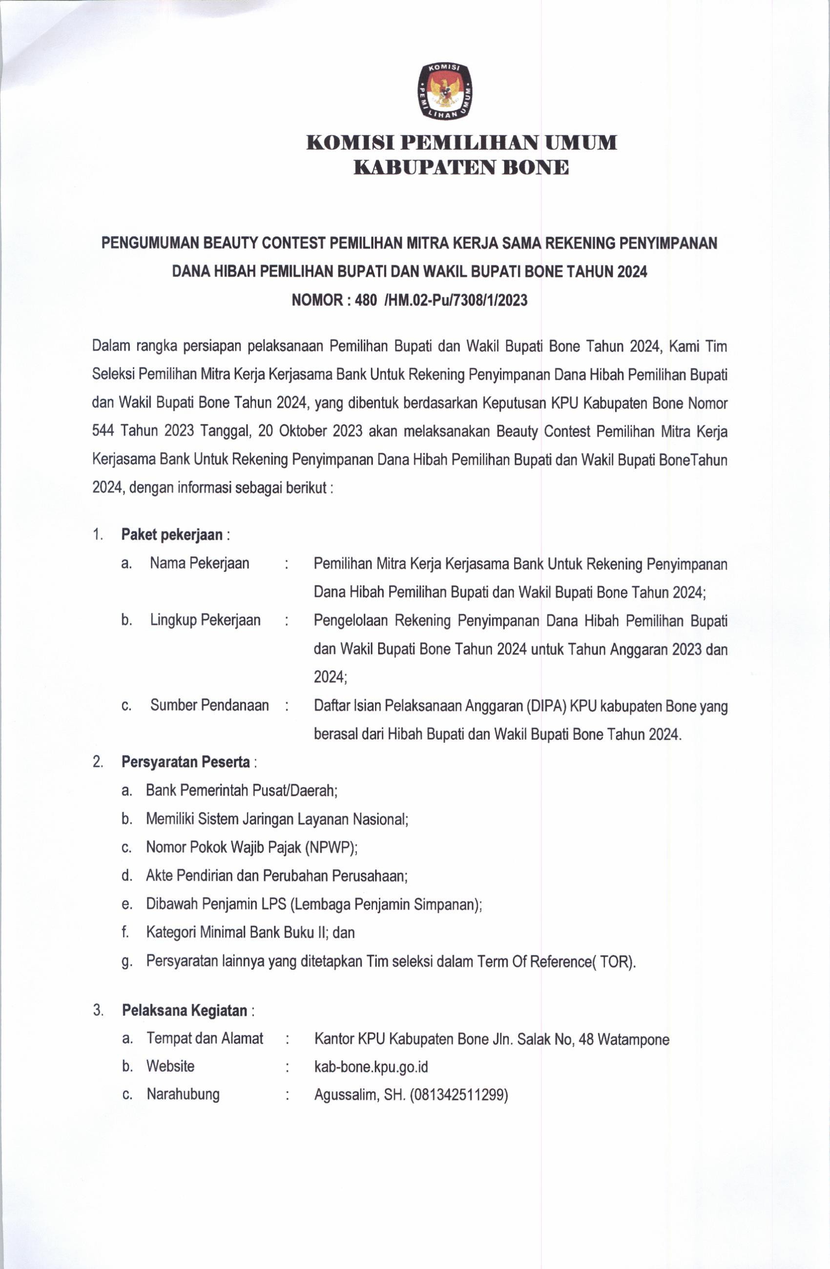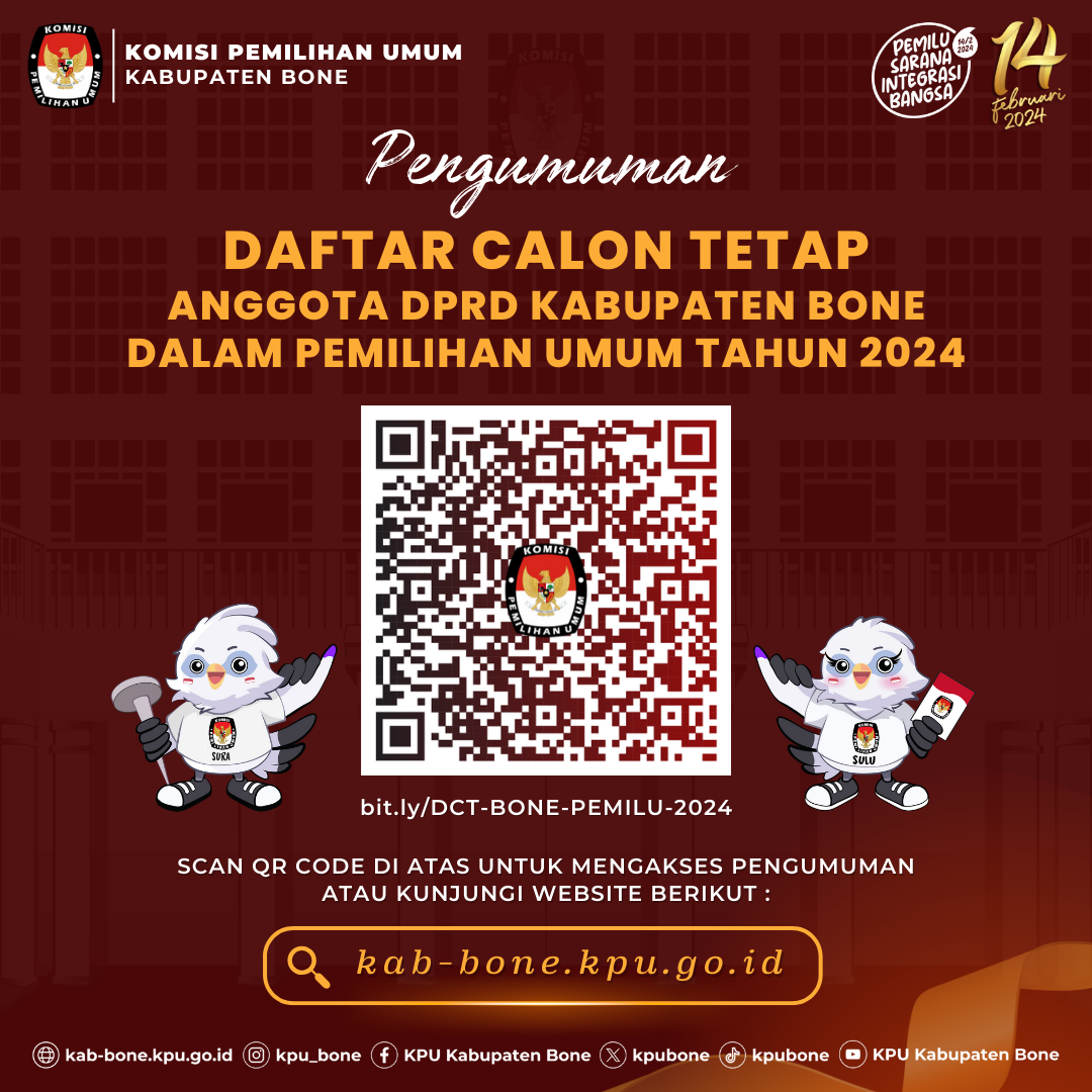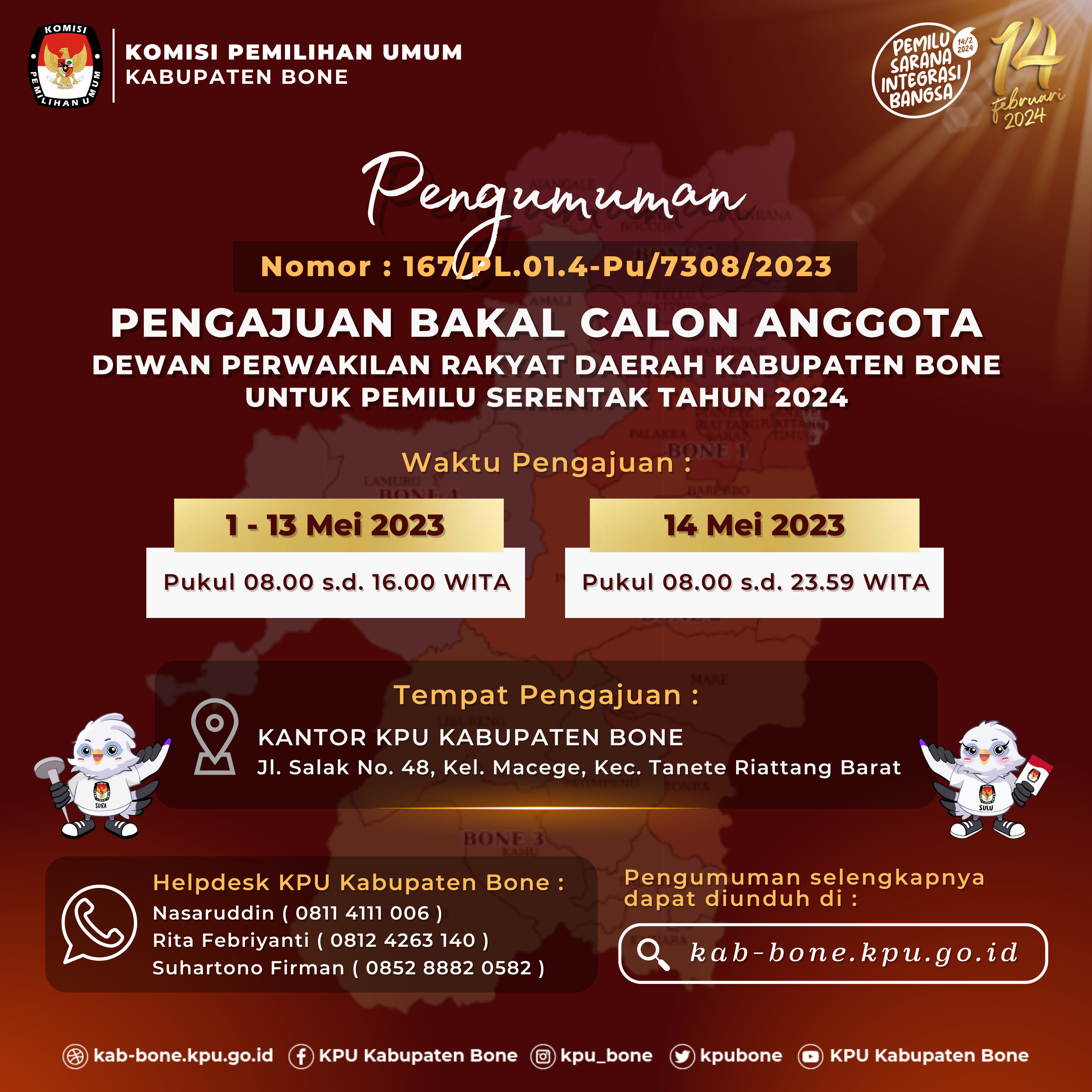 3. Informasi lebih lanjut dapat menghubungi helpdesk pencalonan KPU Kabupaten/Kota BONE